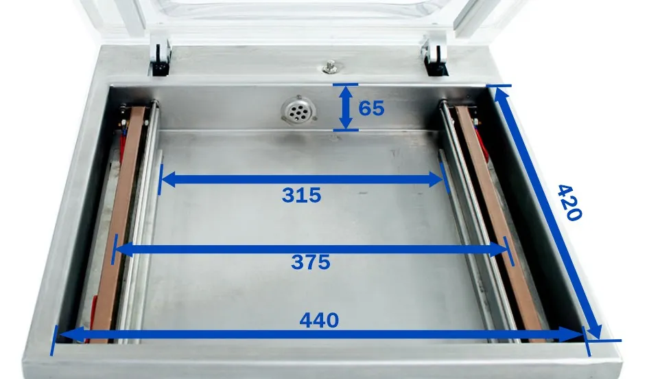 Камерный тип оборудования. Оборудование может иметь одну или две вакуумных камеры. Для двухкамерных упаковщиков так же есть подразделение на расположение камеры (одна на основном корпусе оборудования, вторая в корпусе подвижной крышки)