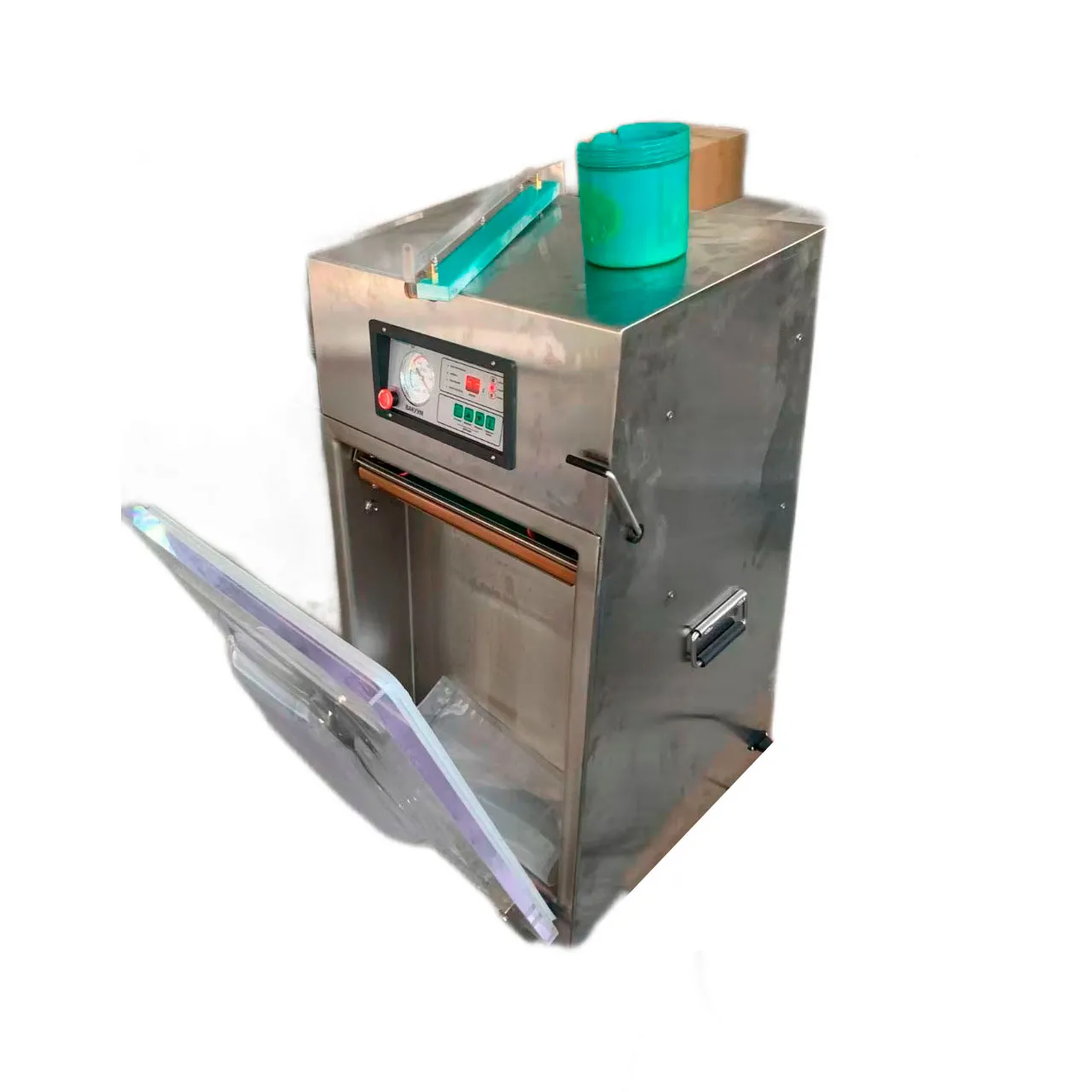 - Гигиеничность и удобство обслуживания. Корпус из нержавеющей стали устойчив к коррозии и легко очищается. Прозрачная крышка из оргстекла позволяет контролировать процесс упаковки, а быстросъемные уплотнители упрощают санитарную обработку камеры.