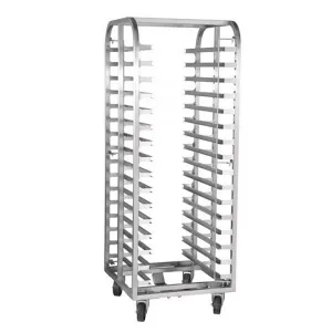 Тележки изготавливаются из нержавеющей стали , имеющий доступ к контакту с продуктами. Каркас сварной из профильной трубы из нерж. стали, имеющий доступ к контакту с продуктами. В основании 4 поворотных колеса диаметром 75 мм. (2 колеса с тормозом). Используется для транспортировки противней размером.